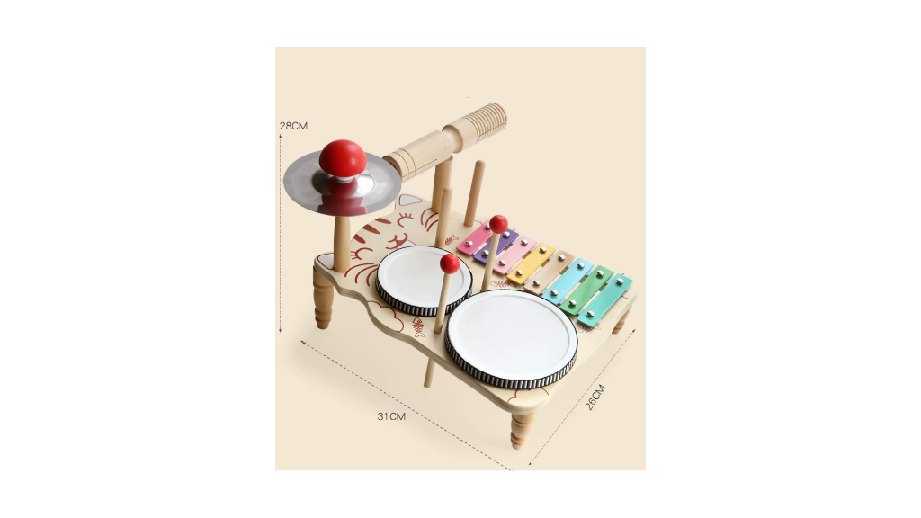 Feito 100% em madeira natural de alta qualidade, ele é seguro, durável e muito mais resistente que os brinquedos de plástico comuns. É o presente perfeito para introduzir os pequenos ao mundo do ritmo e da coordenação motora.